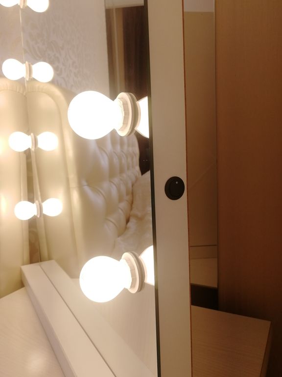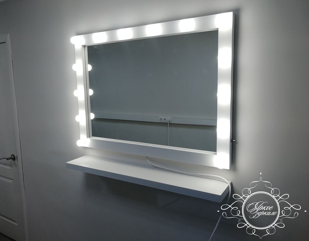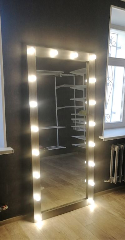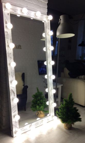 Сделаем для Вас гримерное зеркало с лампочками в раме из натурального дерева, ЛДСП или алюминия.